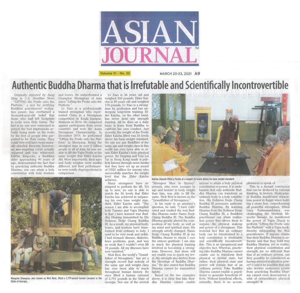 Asian Journal: Authentic Buddha Dharma that is Irrefutable and Scientifically Incontrovertible