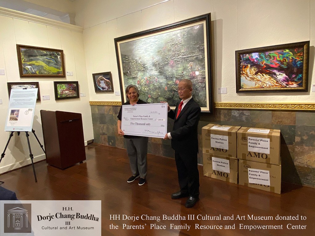For many years, the H.H. Dorje Chang Buddha III Cultural and Art Museum has been committed to and actively participating in all kinds of charity work to support the community. This year, the Museum donated funds to Covina Police Department to help enhance their internal facilities and funded the Parents’ Place Family Resource and Empowerment Center in support of their work in providing aids to families with children for their unmet needs.